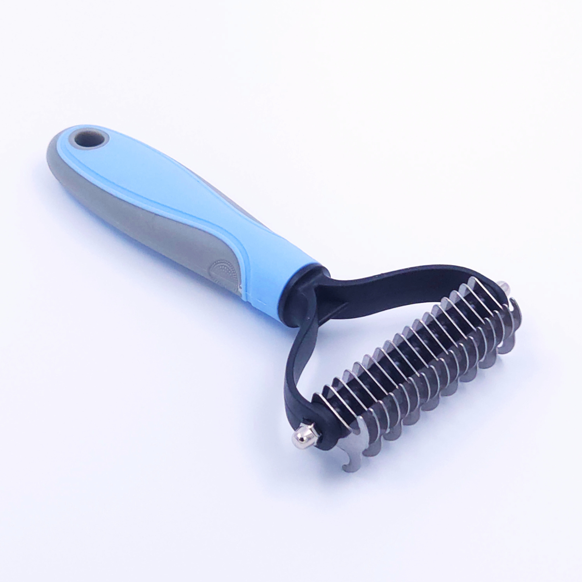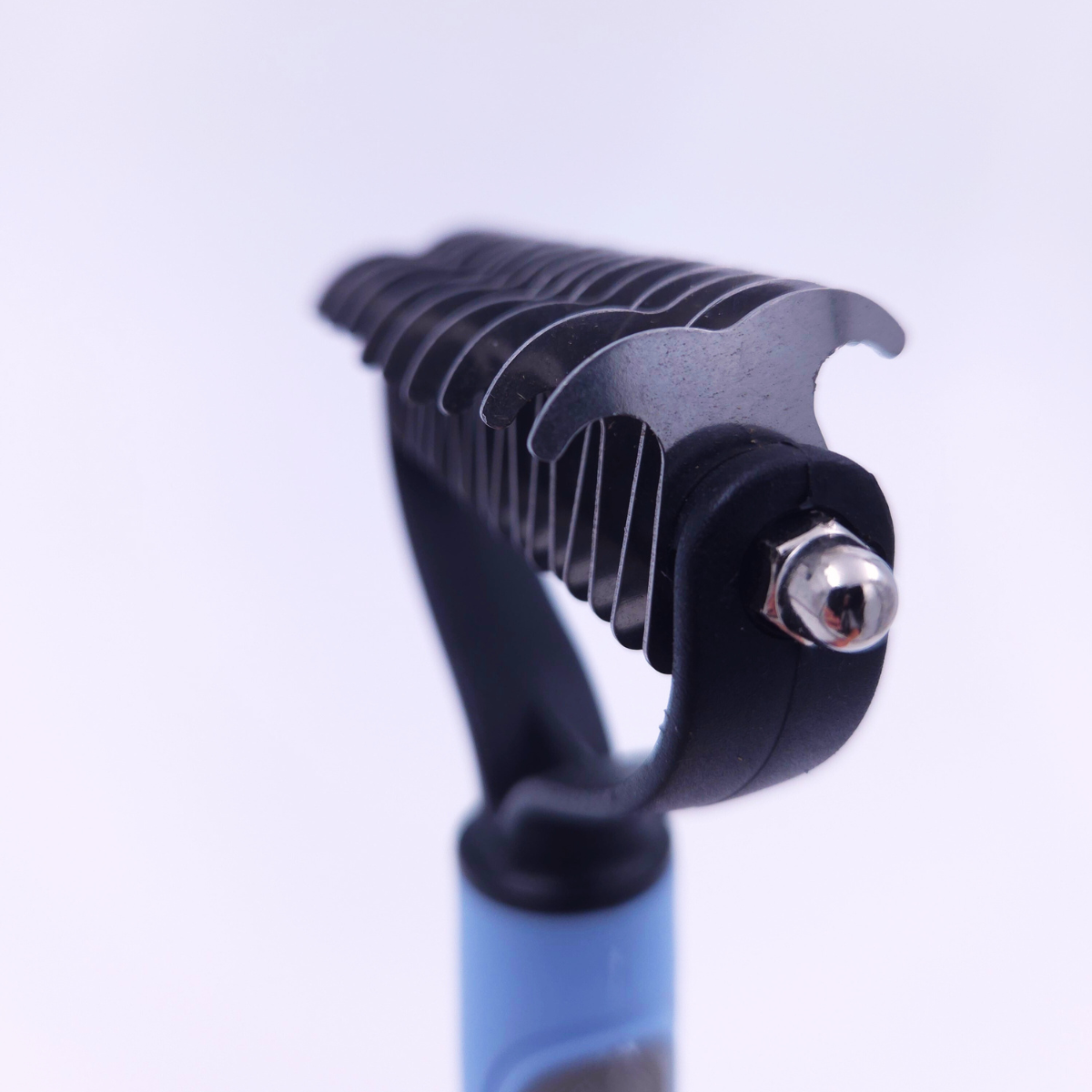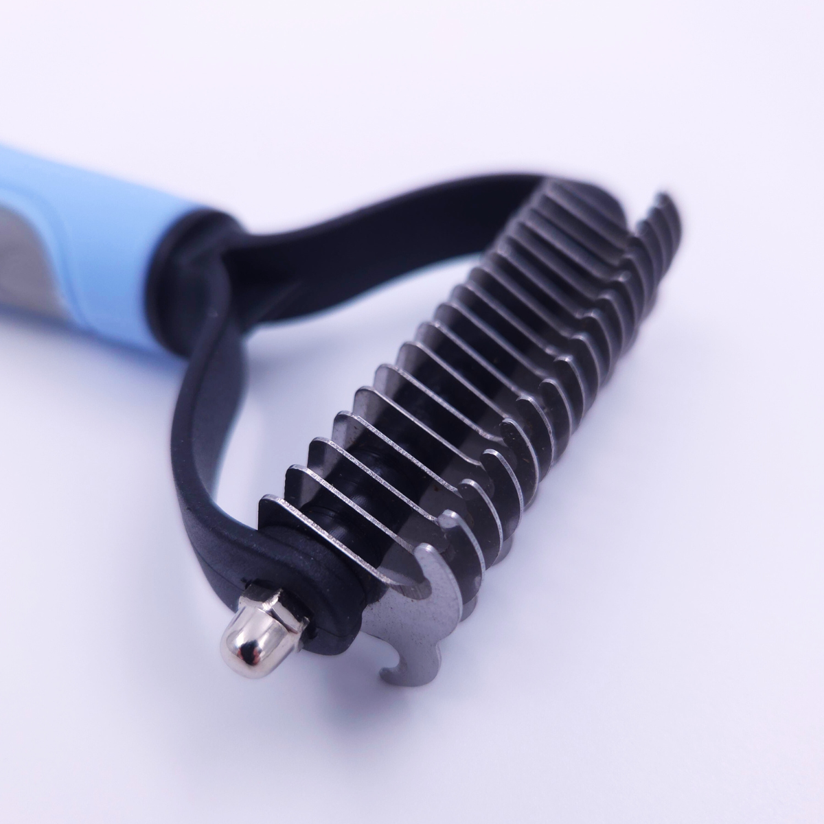 De vassa men skonsamt rundade bladen är utformade för att enkelt skära igenom envisa tovor och samtidigt tunna ur underullen. På så sätt minskar du mängden lös päls, förebygger nya tovor och gör pälsen mer lättskött.