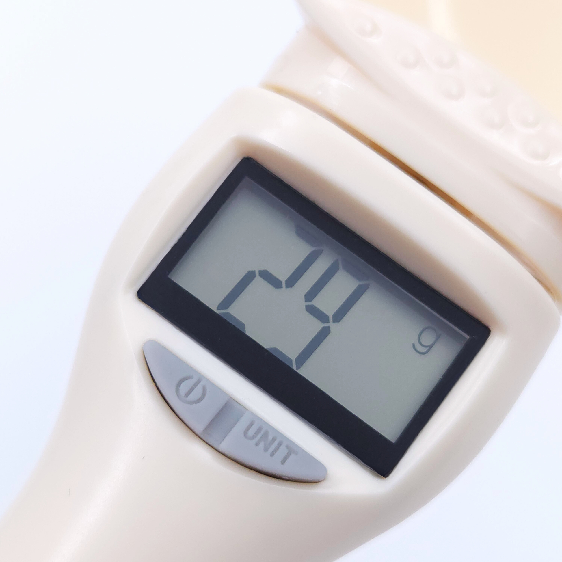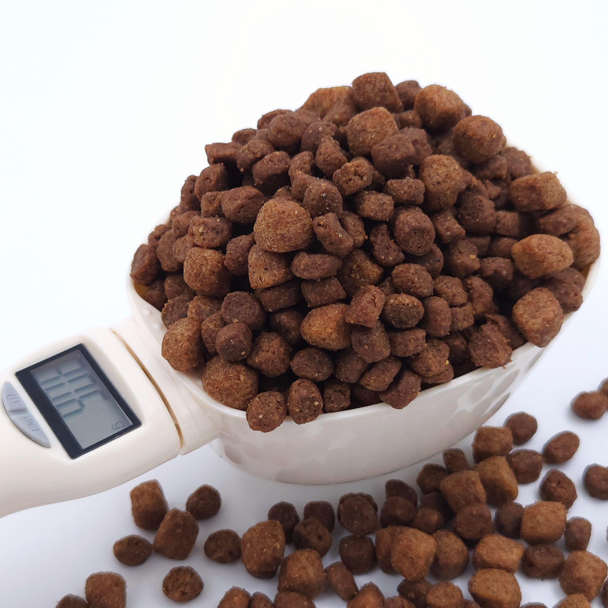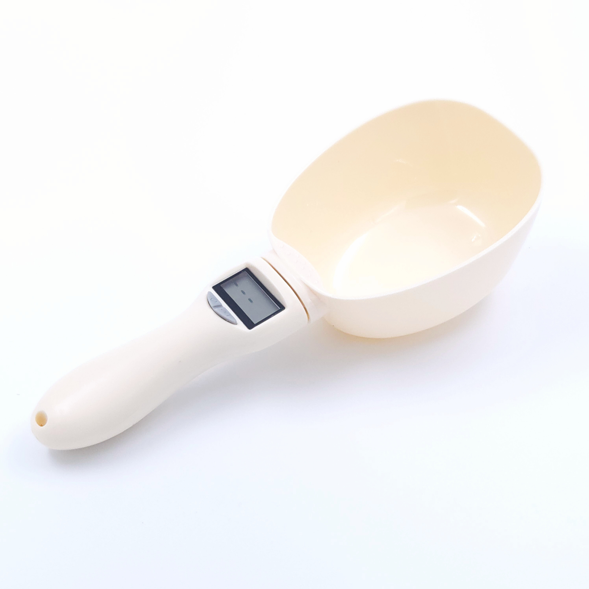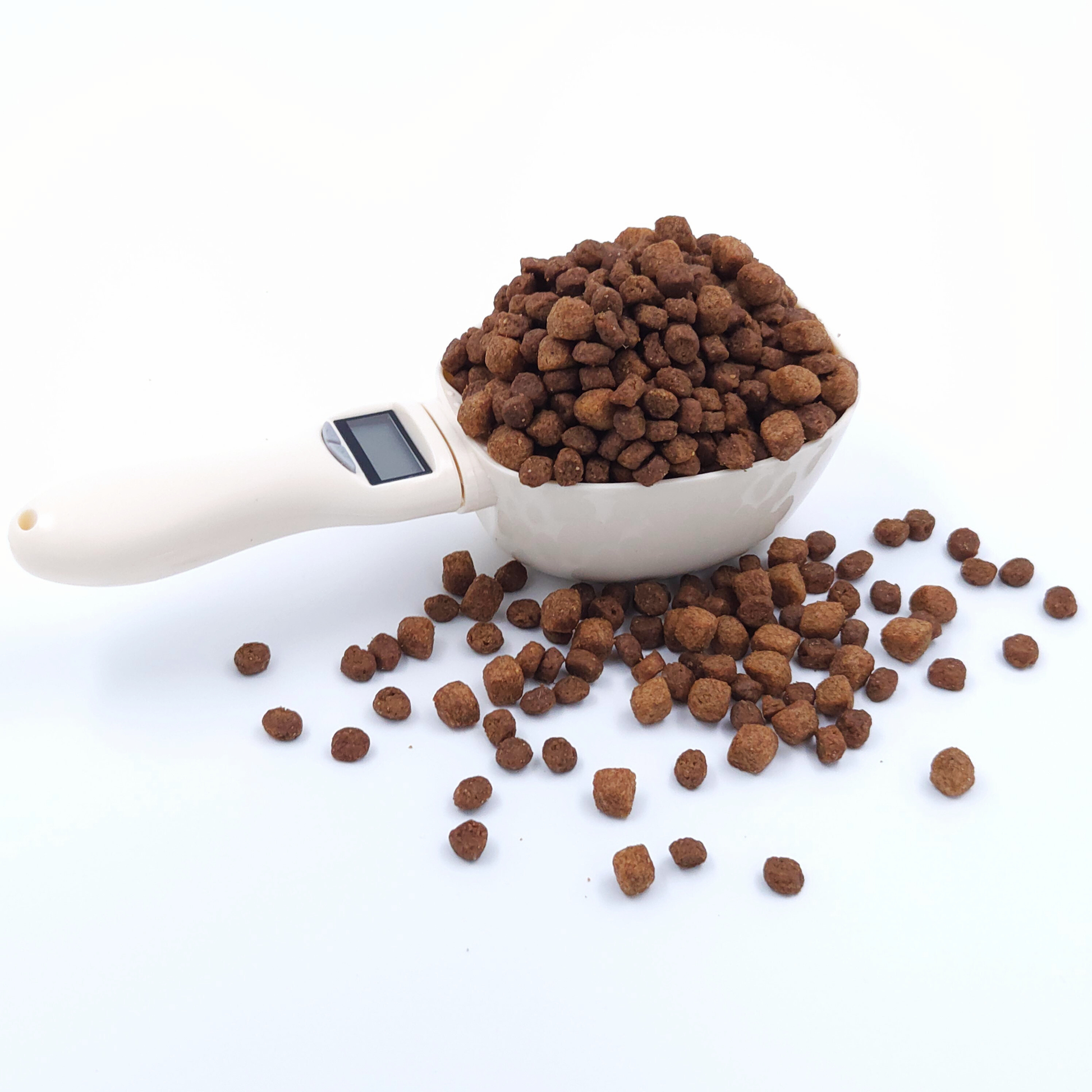 En praktisk matskopa med inbyggd våg som gör det enkelt att ge rätt mängd foder vid varje måltid.
