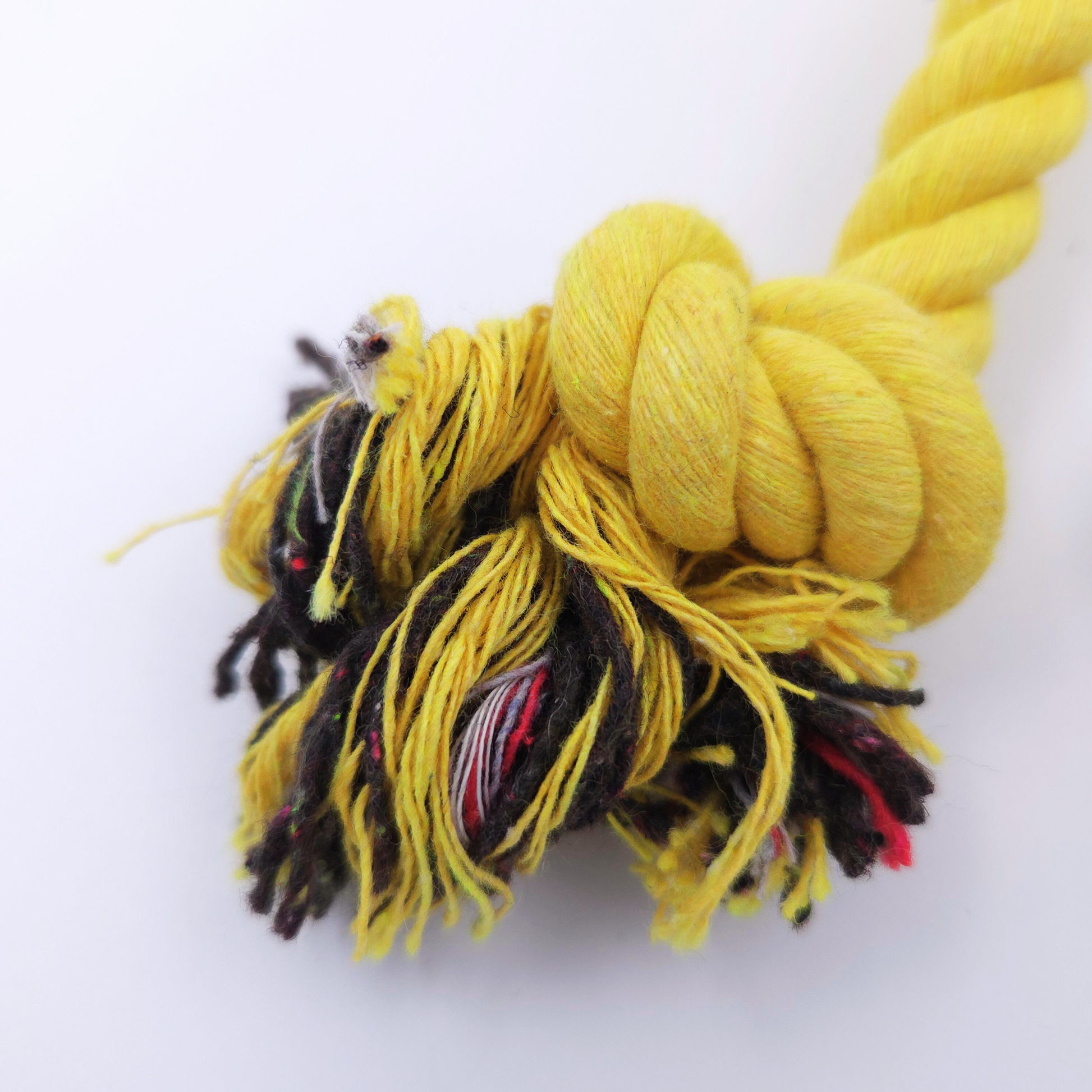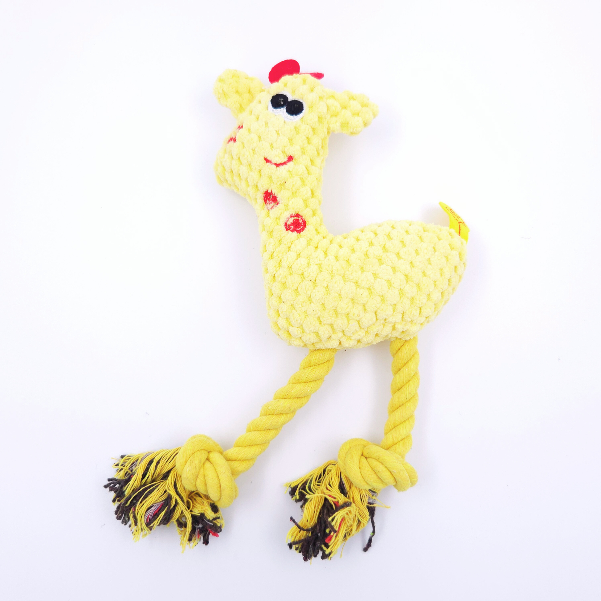 En mjuk hundleksak i tyg med repben som bjuder in till lugn och trygg lek.